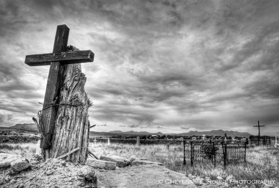 • Captures the serene and storied look of an old New Mexico graveyard.